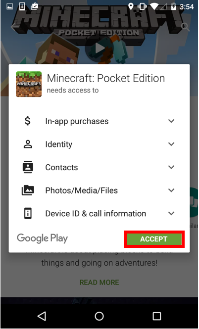 - informations d’identification du compte de l’utilisateur dans Google Play.
